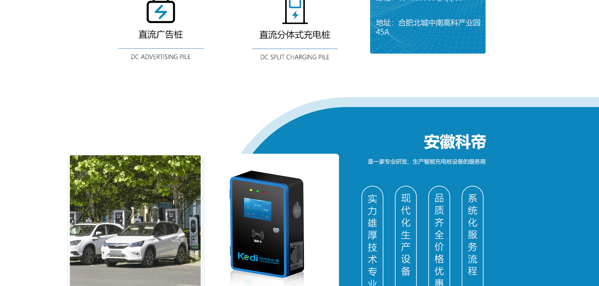 關于我們安徽科帝新能源科技有限公司坐落于安徽省會-合肥,是一家研發(fā)、生產智能充電樁設備,汽車充電站后臺監(jiān)控管理系統(tǒng)和生產高壓開關設備的企業(yè).由專門的研發(fā)團隊、管理團隊按照現(xiàn)代化企業(yè)制度規(guī)范設立的有限責任公司。致力于為能源智能、安全的應用和節(jié)能減排提供整體的技術與產品解決方案。科帝集研發(fā)、設計、生產、銷售以及服務于一體,在電動汽車充電方案,充電設施建設和城市配電方面擁有廣泛的技術研究及經(jīng)驗積累,為客戶提供安全、智能的充電設備及充電運營站建設一體化解決方案。并堅持以人為本、質量為先、顧客至上、不斷創(chuàng)新”的企業(yè)理念,為能源行業(yè)的發(fā)展、節(jié)能減排做出重大的貢獻。公司擁有豐富的產品種類,目前科帝已研發(fā)生產了三十多種產品,充電設備有直流一體式充電樁、直流分體式充電樁、直流廣告樁、交流廣告樁、廣告一體樁、壁掛交直流樁;等多種充電設備;每一款產品都是精心打造,力求為客戶提供優(yōu)越的用戶體驗。展望未來科帝將通過持續(xù)的自...